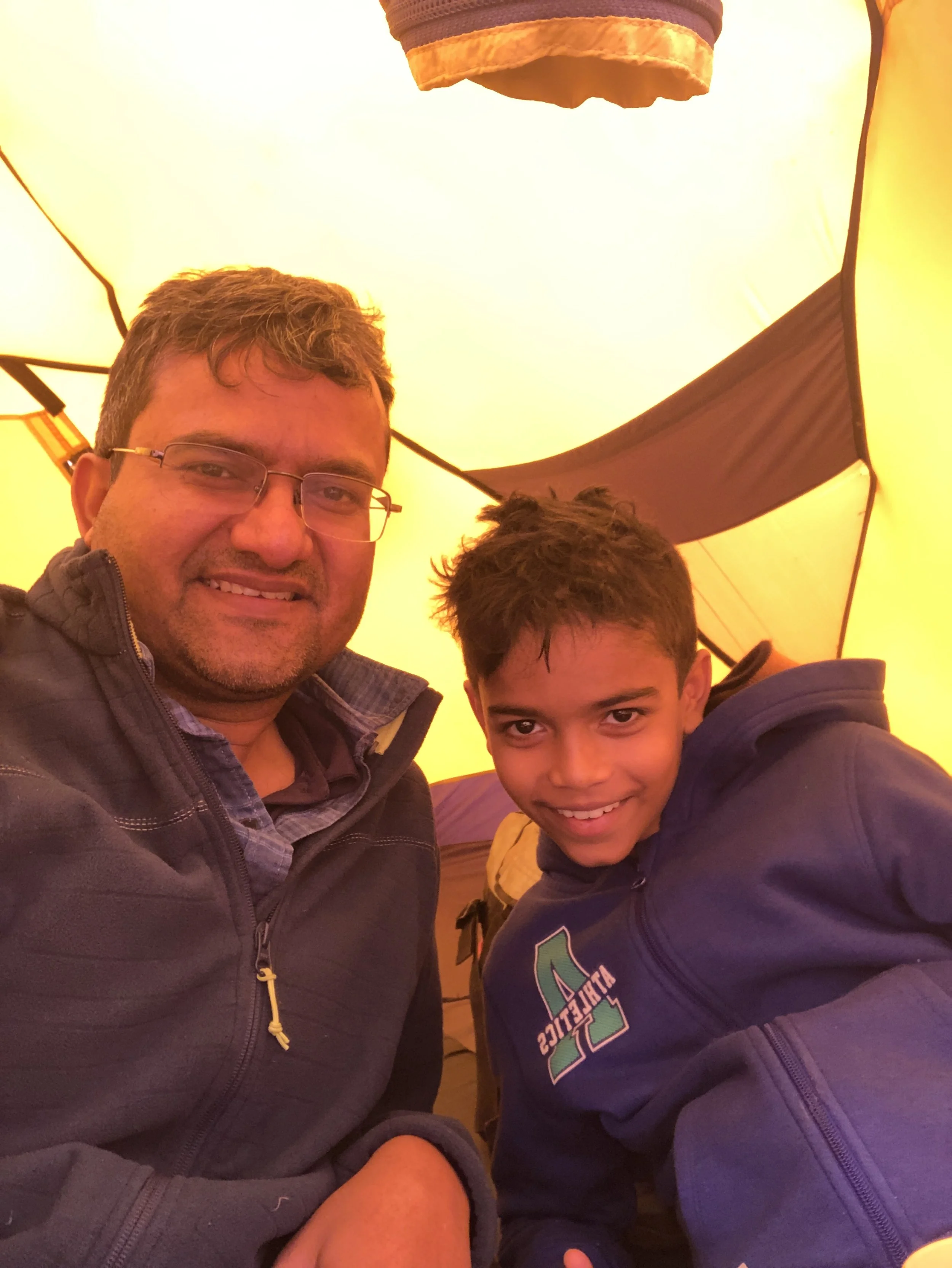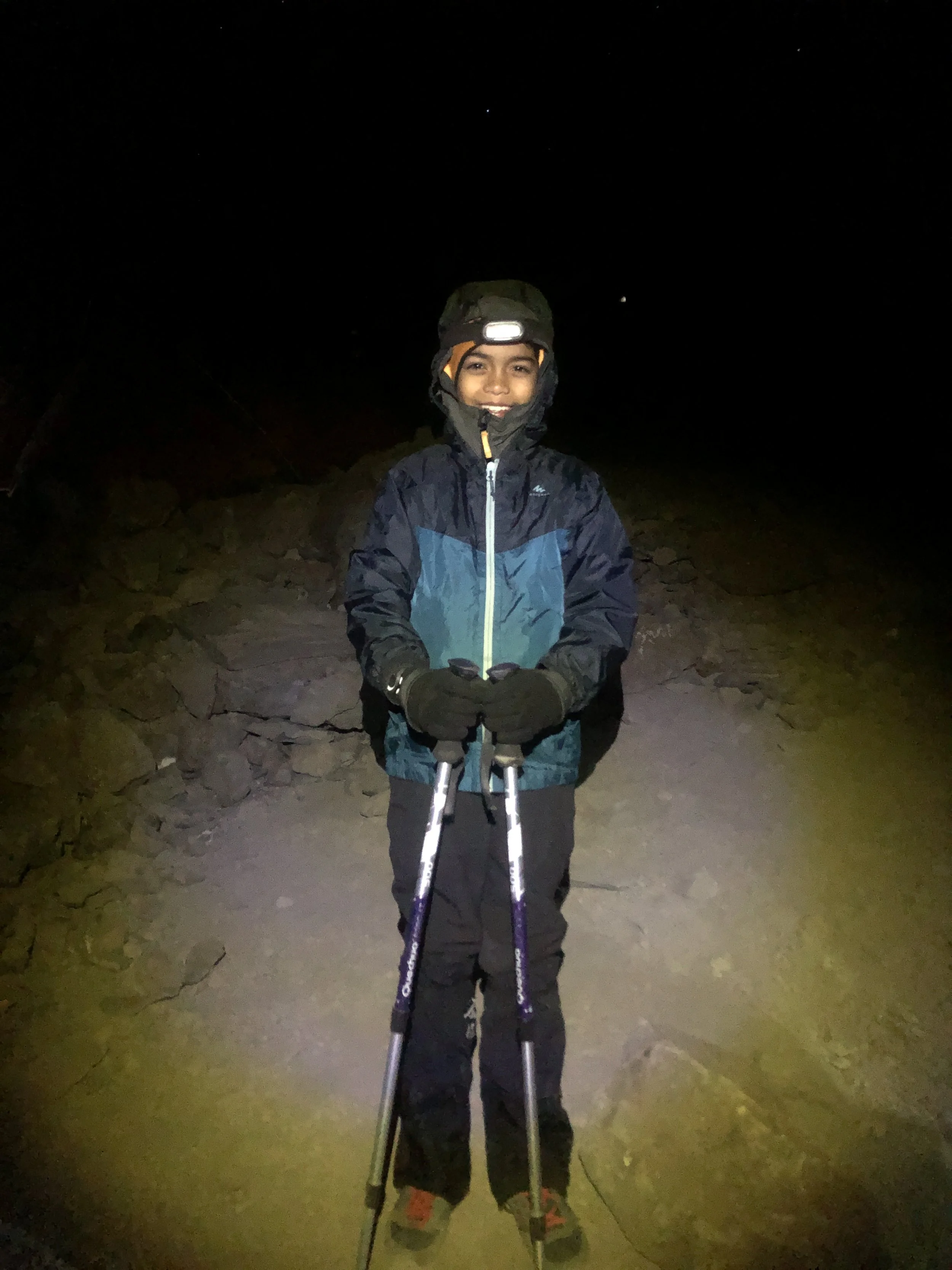 “A completely dark & moonless night, extremely cold & fierce winds throwing needle-like sand particles on our face, sub-zero temperature, steep climb on a fully exposed mountain face, climbing one step at a time on the rocky & sandy moraine towards the summit, and the best part.... I was with my 10 year old son on this adventure!”